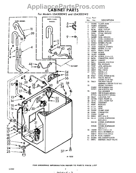 Parts for Whirlpool LDA3000W2: 02 - Cabinet Parts