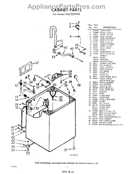 Parts for Whirlpool LDA5300W0: 02 - Cabinet Parts
