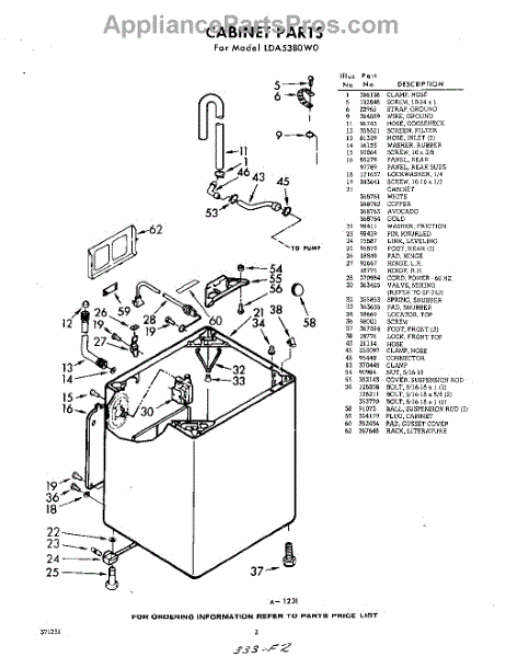 Parts for Whirlpool LDA5380W0: 02 - Cabinet Parts