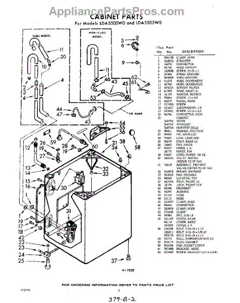 Parts for Whirlpool LDA5500W0: 02 - Cabinet Parts