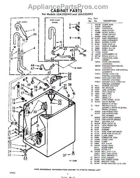 Parts for Whirlpool LDA5505W2: 02 - Cabinet Parts