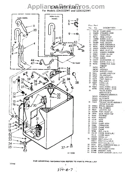 Parts for Whirlpool LDA5525W1: 02 - Cabinet Parts