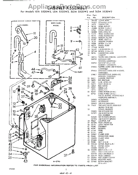 Parts for Whirlpool LDA5525W2: 02 - Cabinet Parts