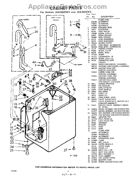Parts for Whirlpool LDA5605W2: 02 - Cabinet Parts