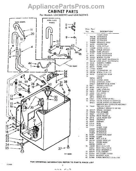 Parts for Whirlpool LDA5605W3: 02 - Cabinet Parts