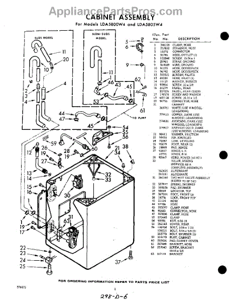 Parts for Whirlpool LDA5805W4: 02 - Cabinet Parts