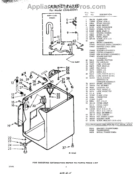 Parts for Whirlpool LDA6400W1: 02 - Cabinet Parts
