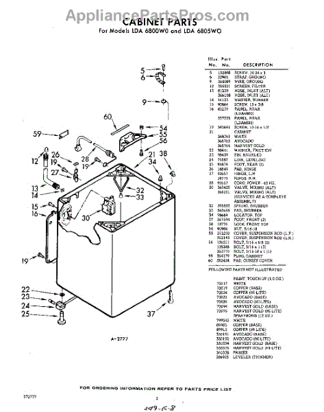 Parts for Whirlpool LDA6805W0: 02 - Cabinet Parts