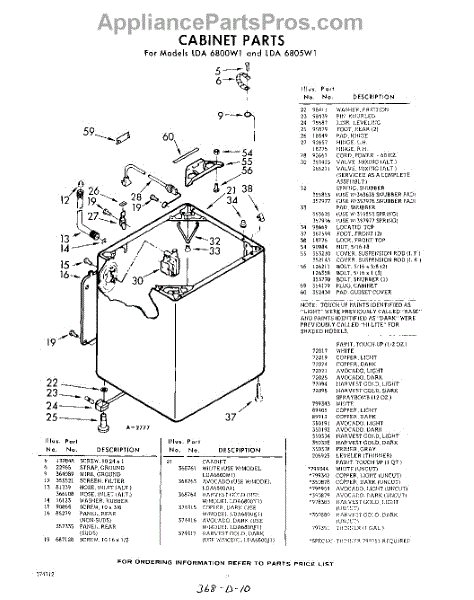 Parts for Whirlpool LDA6805W1: 02 - Cabinet Parts