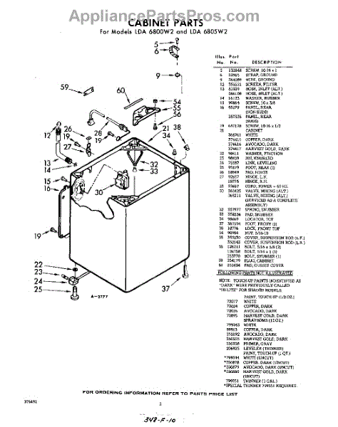 Parts for Whirlpool LDA6805W2: 02 - Cabinet Parts