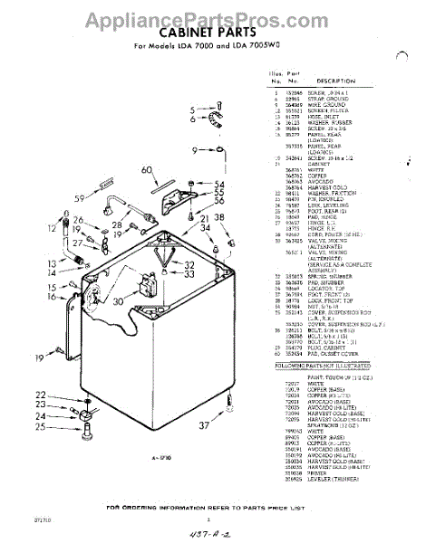 Parts for Whirlpool LDA7005W0: 02 - Cabinet Parts