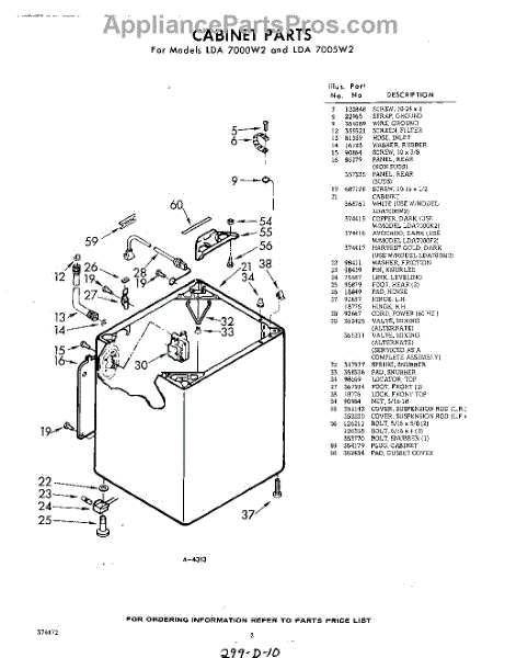 Parts for Whirlpool LDA7005W2: 02 - Cabinet Parts