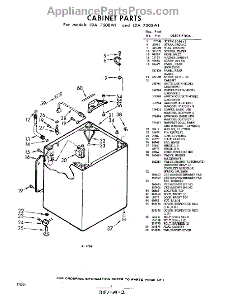 Parts for Whirlpool LDA7505W1: 02 - Cabinet Parts