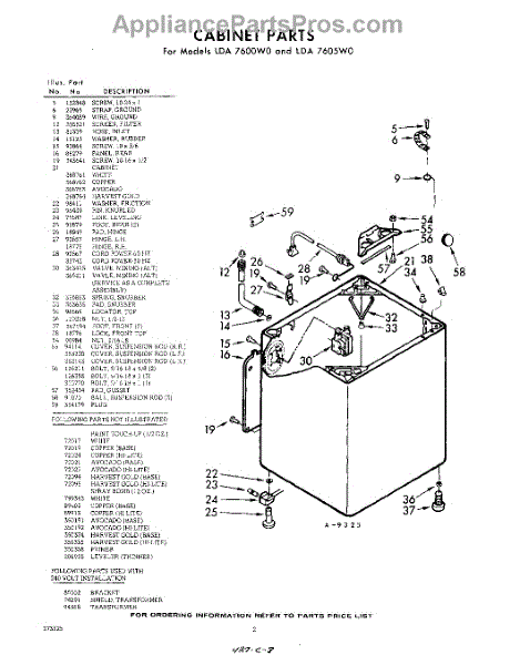 Parts for Whirlpool LDA7600W0: 02 - Cabinet Parts