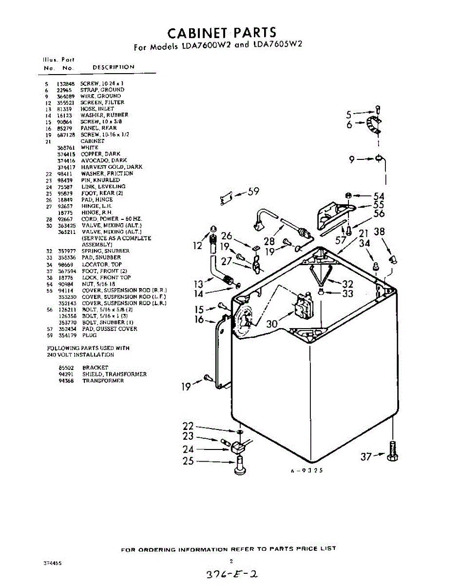 Parts for Whirlpool LDA7600W2: 02 - Cabinet Parts