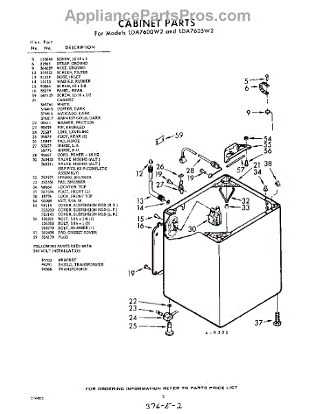 Parts for Whirlpool LDA7605W2: 02 - Cabinet Parts