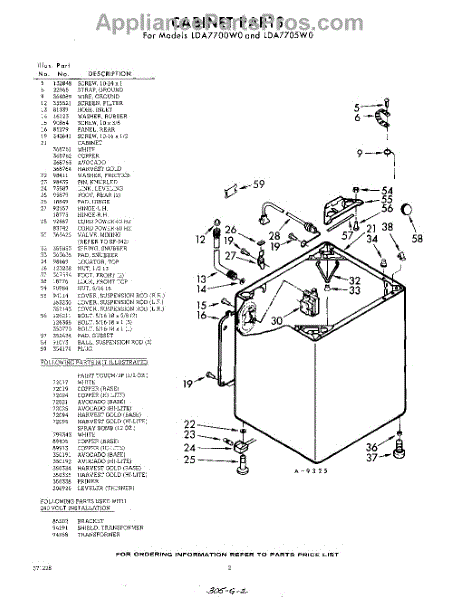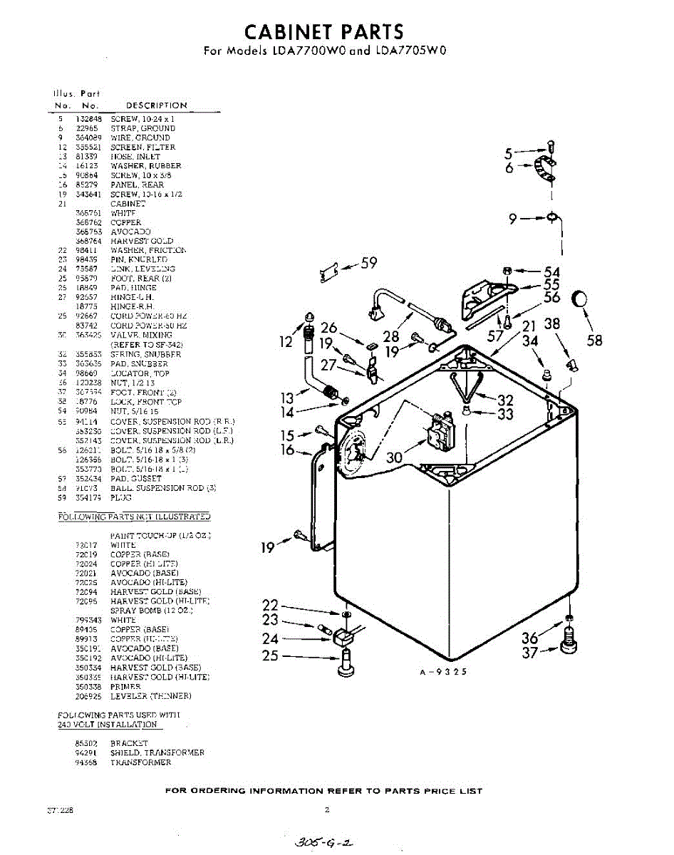 Parts for Whirlpool LDA7705W0: 02 - Cabinet Parts