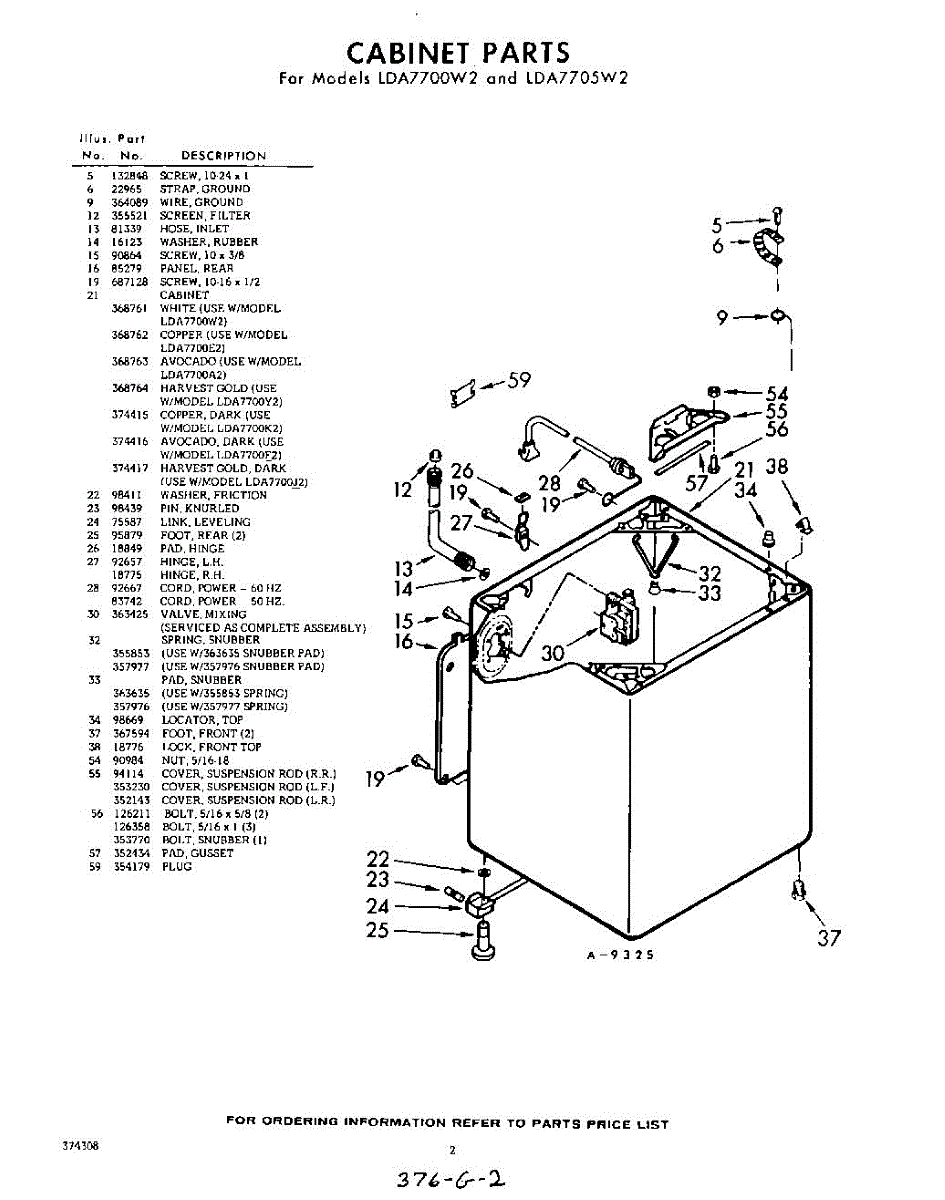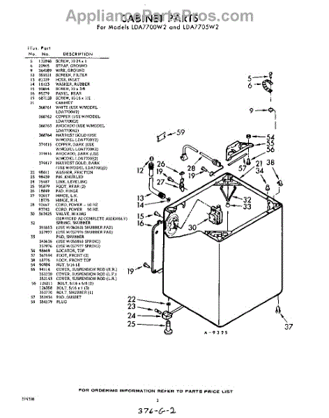 Parts for Whirlpool LDA7705W2: 02 - Cabinet Parts