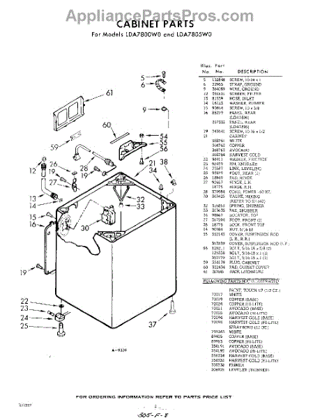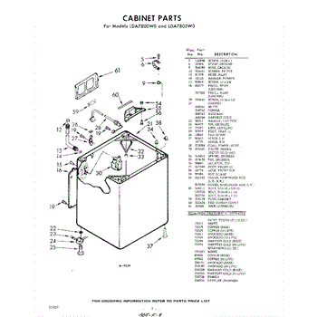 Parts for Whirlpool LDA7805W0: 02 - Cabinet Parts