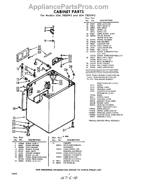 Parts for Whirlpool LDA7805W3: 02 - Cabinet Parts