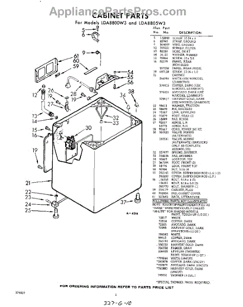 Parts for Whirlpool LDA8805W3: 02 - Cabinet Parts