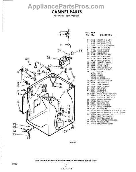 Parts for Whirlpool LDA9800W1: 02 - Cabinet Parts