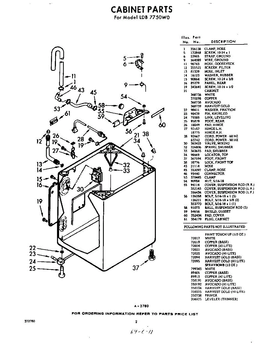 Parts for Whirlpool LDB7750W0: 02 - Cabinet Parts