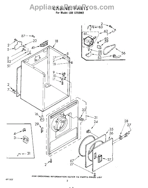 Parts for Whirlpool LDE5750W2: 02 - Cabinet Parts