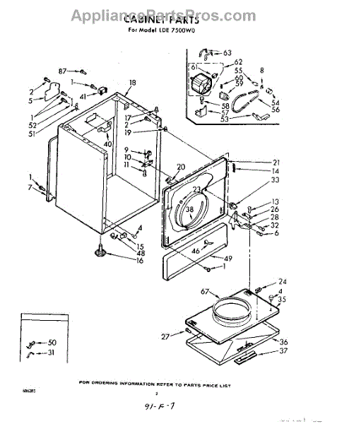 Parts for Whirlpool LDE7500W0: 02 - Cabinet Parts