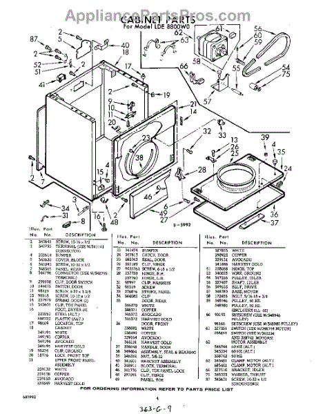 Parts for Whirlpool LDE8800W0: 04 - Cabinet Parts