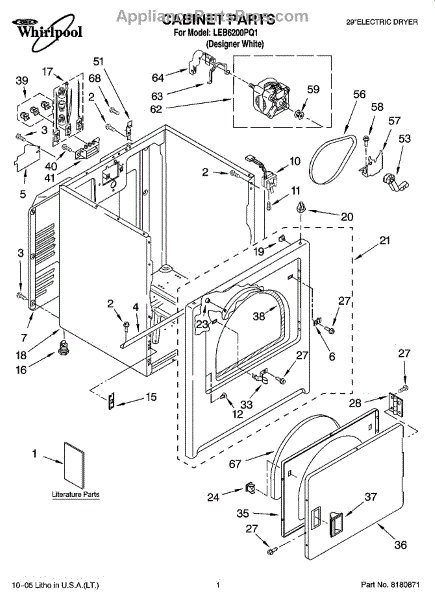 Parts for Whirlpool LEB6200PQ1: 01 - Cabinet Parts