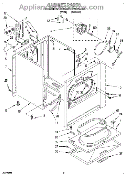 Fits all Whirlpool-made dryers (Whirlpool, Kenmore with prefix 110, Roper, KitchenAid, and Estate). Matching belt 341241 and rear support rollers 349241T. Whirlpool dryer repair manual 677818L.