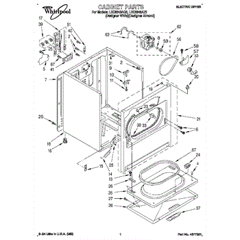 Fits all Whirlpool-made dryers (Whirlpool, Kenmore with prefix 110, Roper, KitchenAid, and Estate). Matching belt 341241 and rear support rollers 349241T. Whirlpool dryer repair manual 677818L.