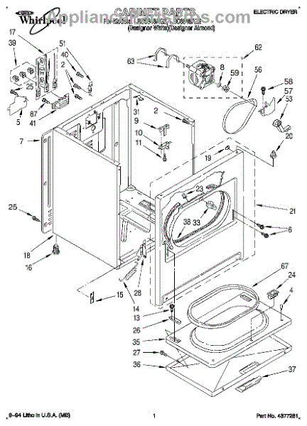 Fits all Whirlpool-made dryers (Whirlpool, Kenmore with prefix 110, Roper, KitchenAid, and Estate). Matching belt 341241 and rear support rollers 349241T. Whirlpool dryer repair manual 677818L.
