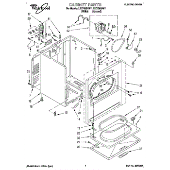 Fits all Whirlpool-made dryers (Whirlpool, Kenmore with prefix 110, Roper, KitchenAid, and Estate). Matching belt 341241 and rear support rollers 349241T. Whirlpool dryer repair manual 677818L.