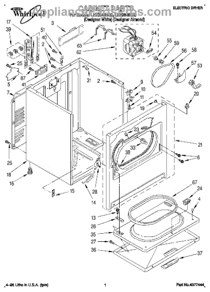 Fits all Whirlpool-made dryers (Whirlpool, Kenmore with prefix 110, Roper, KitchenAid, and Estate). Matching belt 341241 and rear support rollers 349241T. Whirlpool dryer repair manual 677818L.