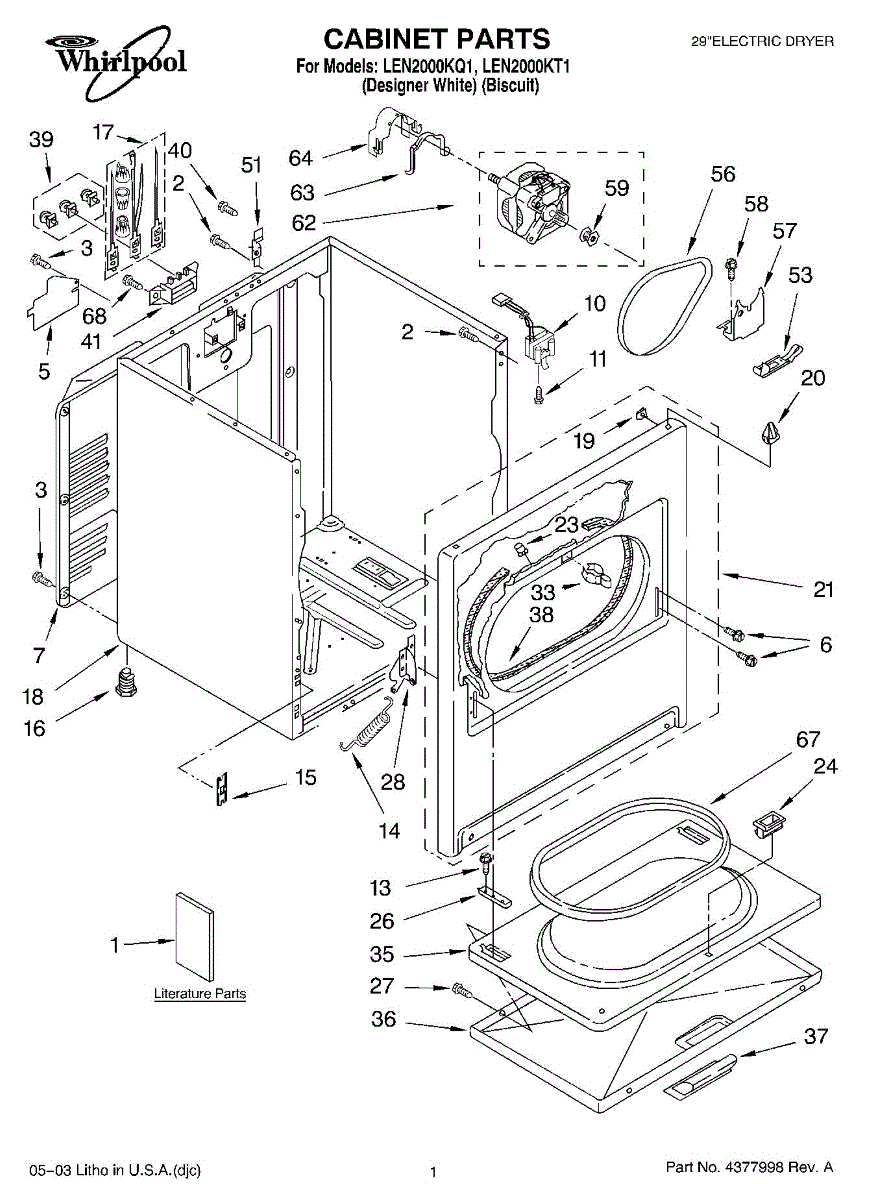 Dryer outer cabinet that houses internal components. Replace if your cabinet is rusted, dented, cracked, or damaged, compromising structural integrity.