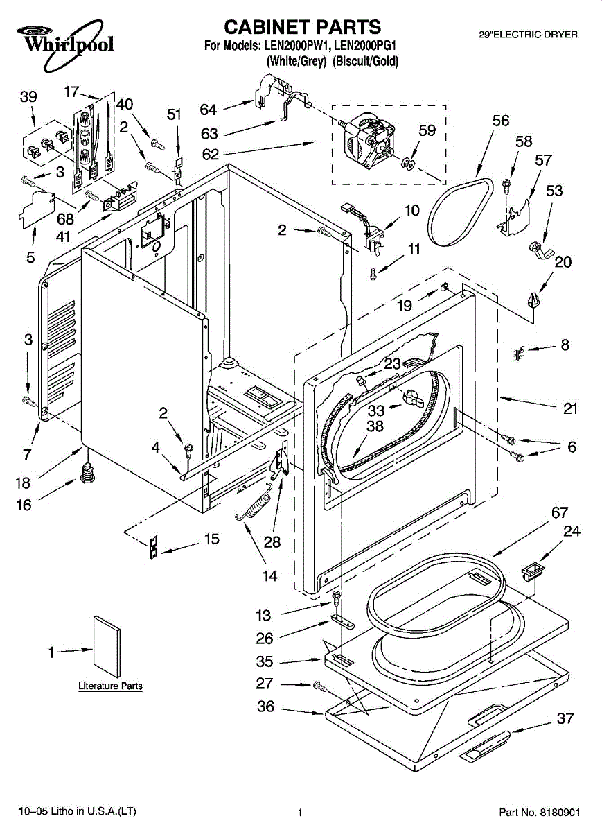 Parts for Whirlpool LEN2000PG1: 01 - Cabinet Parts