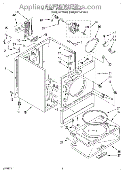 Fits all Whirlpool-made dryers (Whirlpool, Kenmore with prefix 110, Roper, KitchenAid, and Estate). Matching belt 341241 and rear support rollers 349241T. Whirlpool dryer repair manual 677818L.