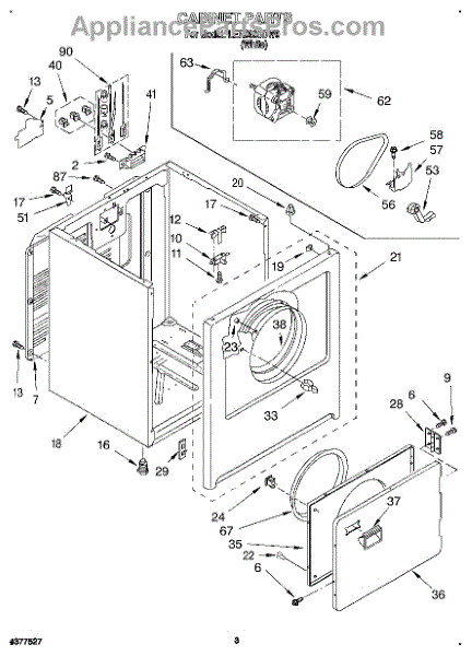 Fits all Whirlpool-made dryers (Whirlpool, Kenmore with prefix 110, Roper, KitchenAid, and Estate). Matching belt 341241 and rear support rollers 349241T. Whirlpool dryer repair manual 677818L.