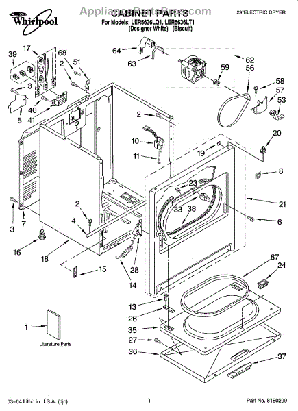Parts for Whirlpool LER5636LT1: 01 - Cabinet Parts