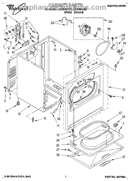Fits all Whirlpool-made dryers (Whirlpool, Kenmore with prefix 110, Roper, KitchenAid, and Estate). Matching belt 341241 and rear support rollers 349241T. Whirlpool dryer repair manual 677818L.