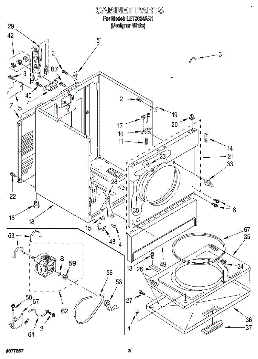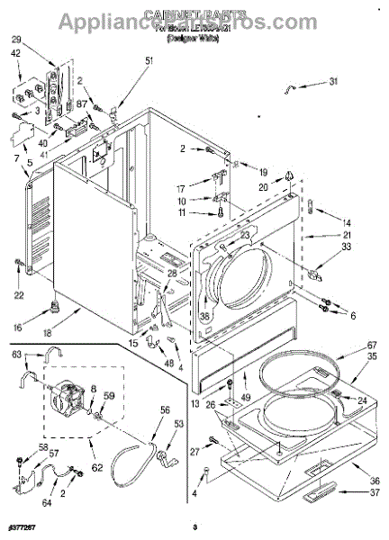 Fits all Whirlpool-made dryers (Whirlpool, Kenmore with prefix 110, Roper, KitchenAid, and Estate). Matching belt 341241 and rear support rollers 349241T. Whirlpool dryer repair manual 677818L.