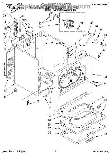 Fits all Whirlpool-made dryers (Whirlpool, Kenmore with prefix 110, Roper, KitchenAid, and Estate). Matching belt 341241 and rear support rollers 349241T. Whirlpool dryer repair manual 677818L.