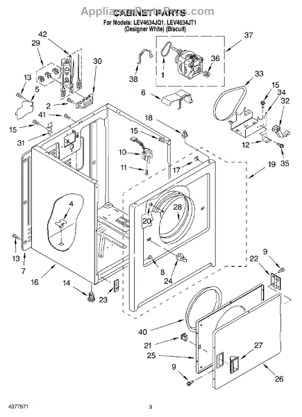 Fits all Whirlpool-made dryers (Whirlpool, Kenmore with prefix 110, Roper, KitchenAid, and Estate). Matching belt 341241 and rear support rollers 349241T. Whirlpool dryer repair manual 677818L.