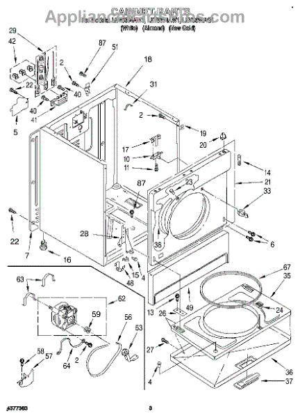 Fits all Whirlpool-made dryers (Whirlpool, Kenmore with prefix 110, Roper, KitchenAid, and Estate). Matching belt 341241 and rear support rollers 349241T. Whirlpool dryer repair manual 677818L.