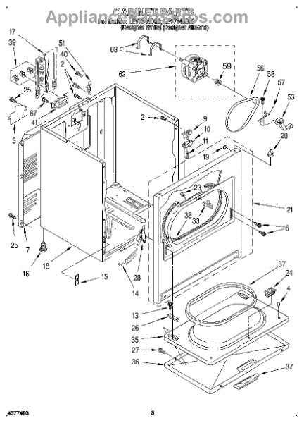 Fits all Whirlpool-made dryers (Whirlpool, Kenmore with prefix 110, Roper, KitchenAid, and Estate). Matching belt 341241 and rear support rollers 349241T. Whirlpool dryer repair manual 677818L.