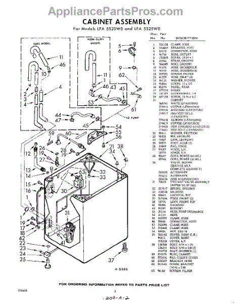 Parts for Whirlpool LFA5525W0: 02 - Cabinet Parts
