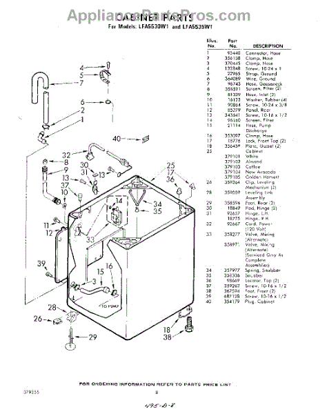 Parts for Whirlpool LFA5530W1: 08 - Cabinet Parts