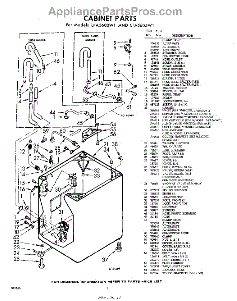 Parts for Whirlpool LFA5600W1: 02 - Cabinet Parts